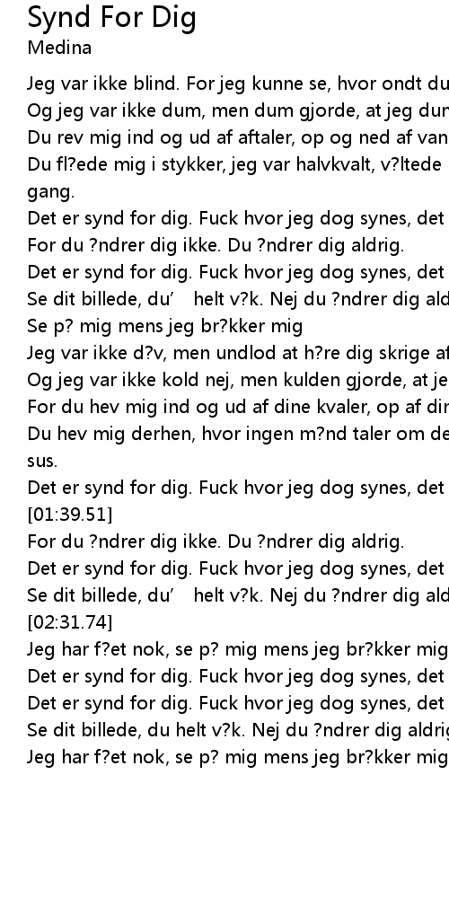 | [03:01.87] | Det er synd for dig. Fuck hvor jeg dog synes, det er synd for dig. |