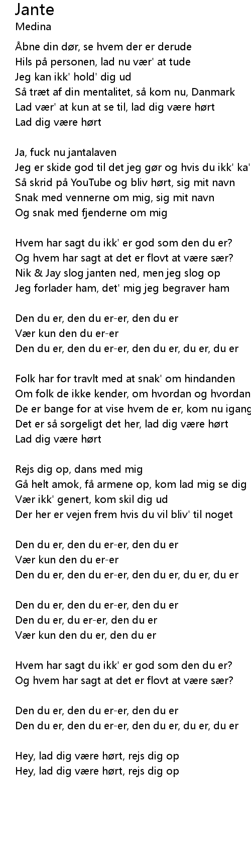 | Så træt af din mentalitet, så kom nu, Danmark | |