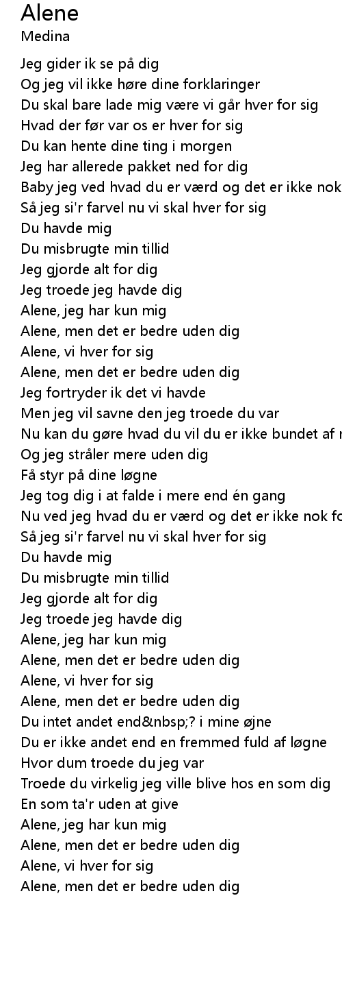 | Baby jeg ved hvad du er v rd og det er ikke nok for mig | |