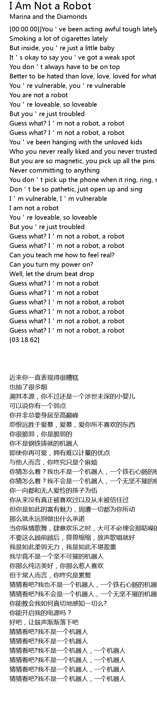 | [02:59.50] | Guess what? I m not a robot, a robot |