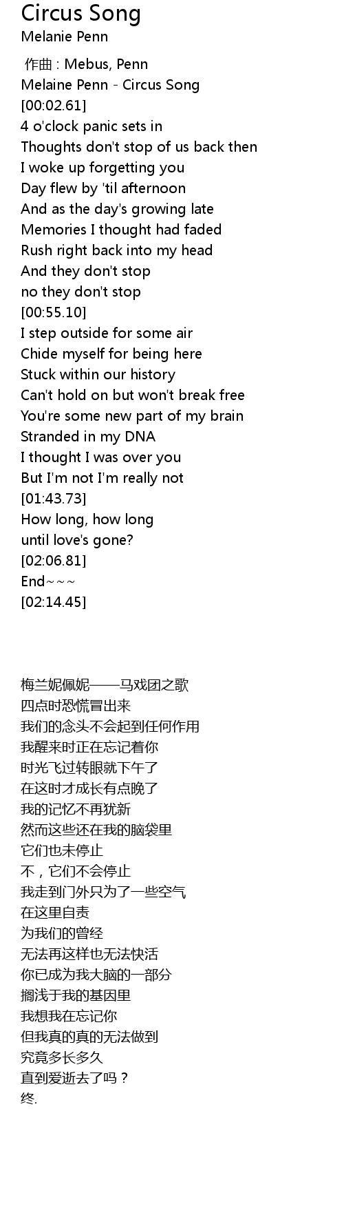 | [00:00.61] | Melaine Penn Circus Song |