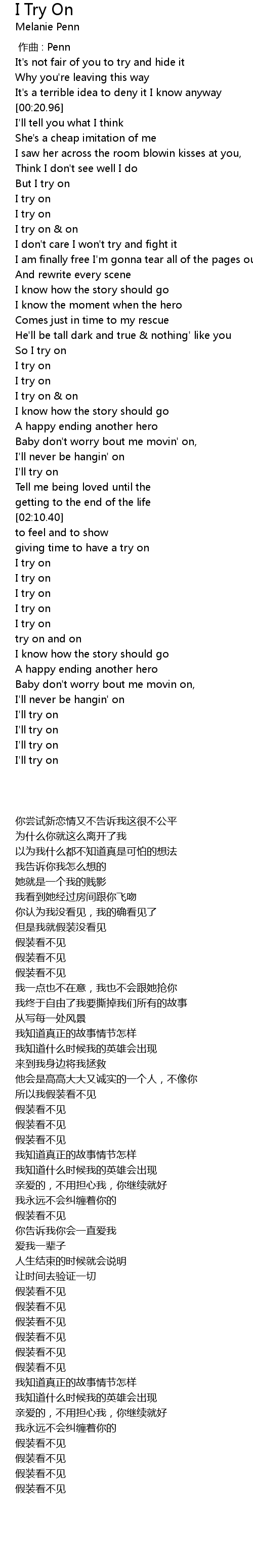 | [02:23.01] | I try on |