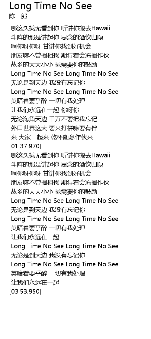 | [02:09.259] | 哪这久拢无看到你 听讲你搬去Hawaii |