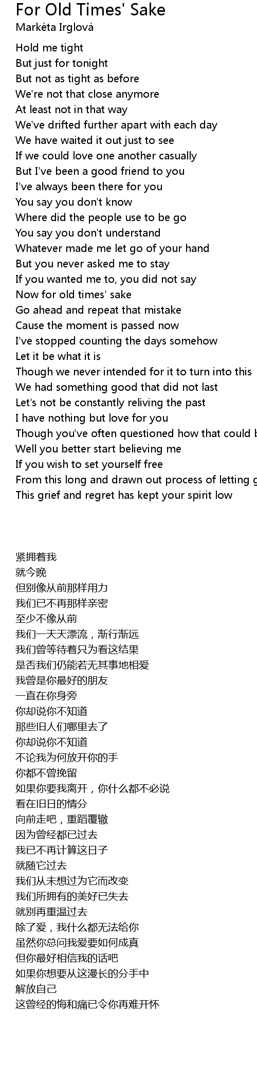 Now for old times' sake |