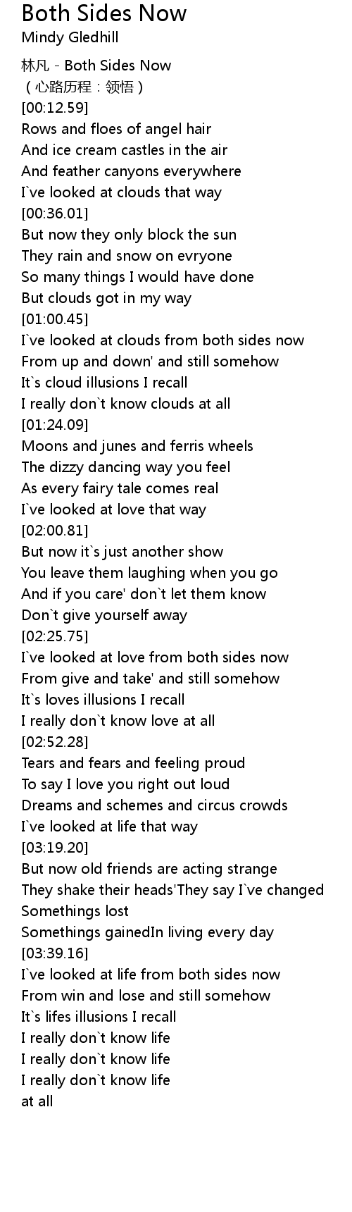 | [01:01.91] | I ve looked at clouds from both sides now |
