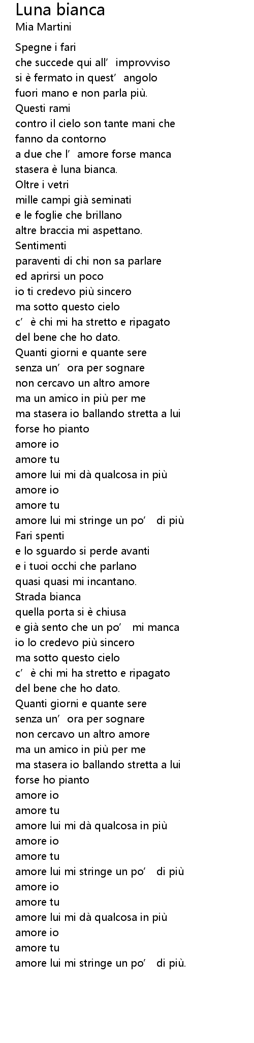 | Song | Luna bianca |