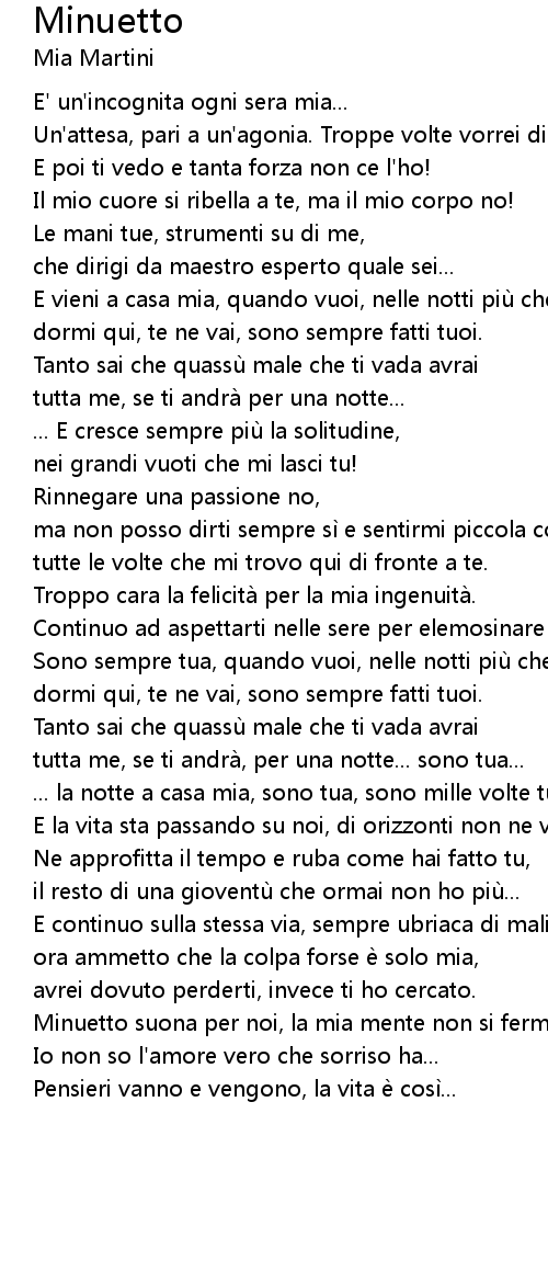 | Minuetto suona per noi, la mia mente non si ferma mai. | |