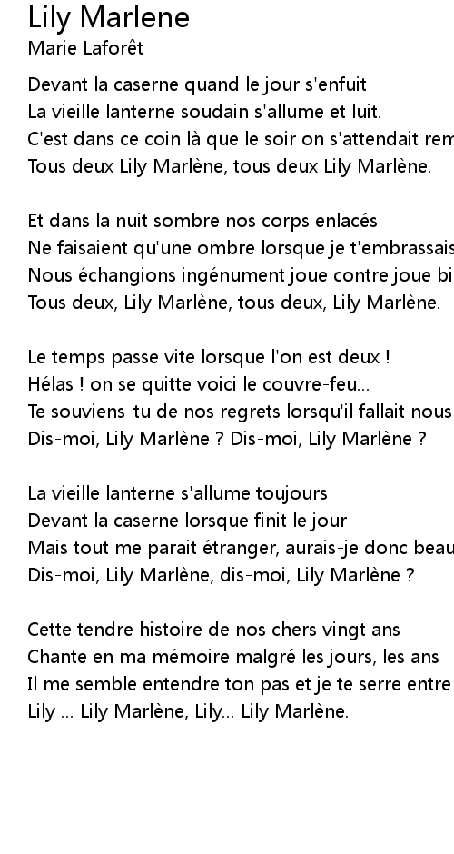 | Dis-moi, Lily Marlène, dis-moi, Lily Marlène ? | |