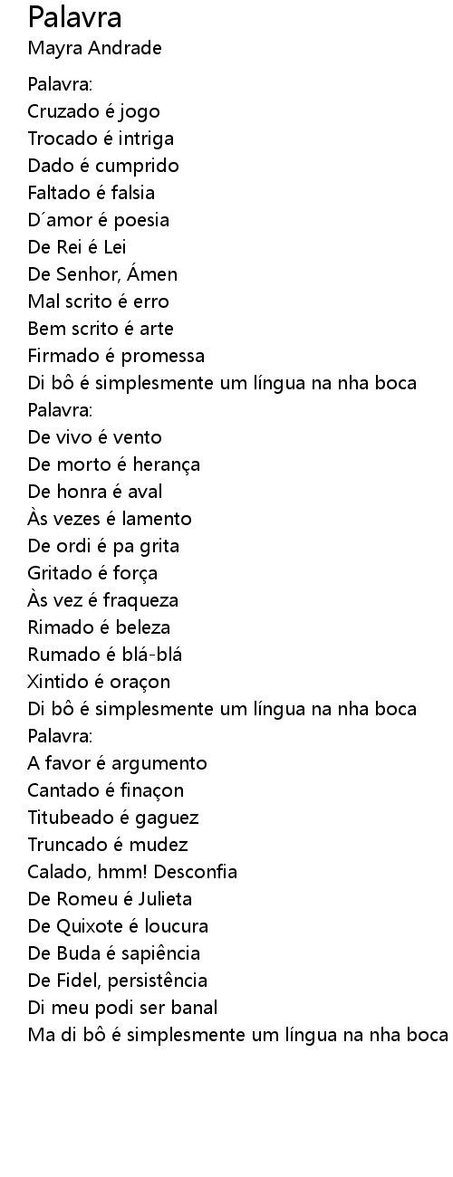 | Ma di bô é simplesmente um língua na nha boca |