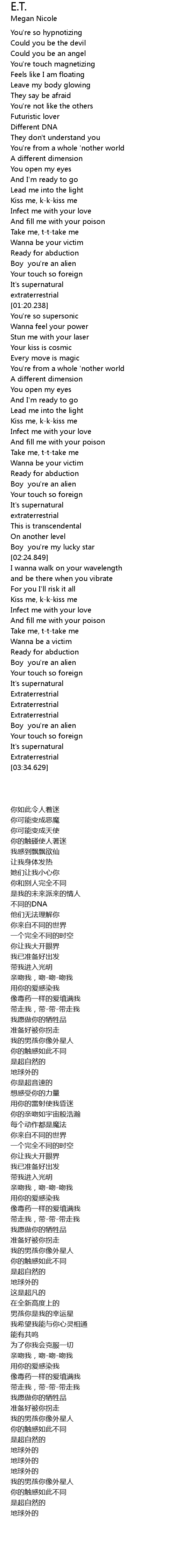 | [02:01.479] | Boy you' re an alien |