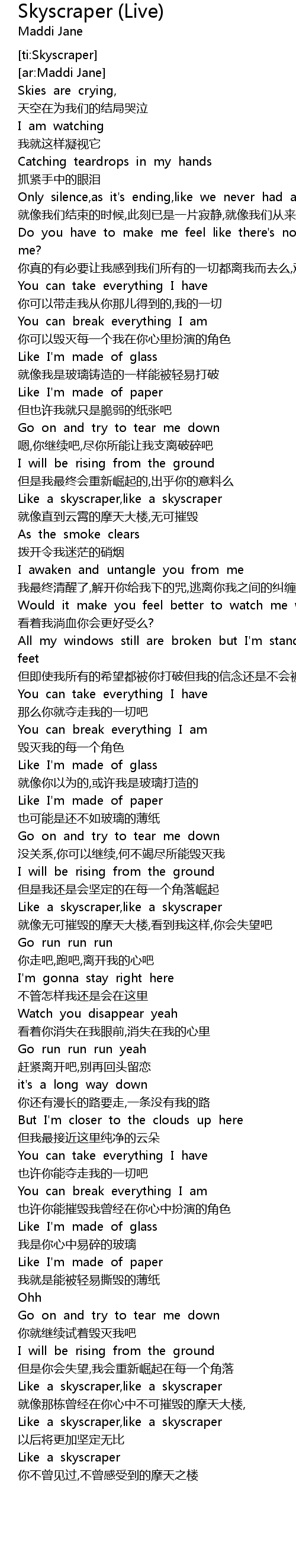 | [02:19.733] | Like a skyscraper,like a skyscraper |