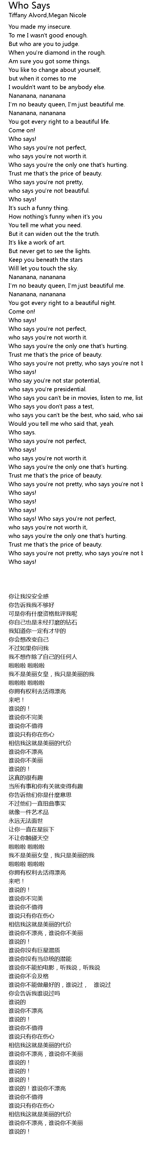 Who says you're not pretty, who says you're not beautiful. |