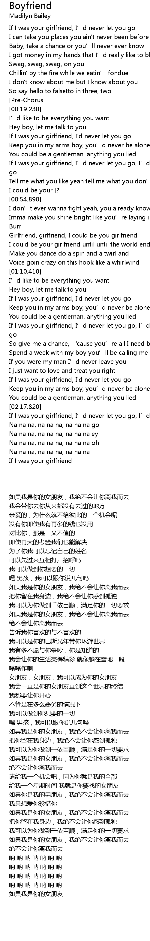 | [01:35.200] | If I was your girlfriend, I' d never let you go, I' d never let you go |