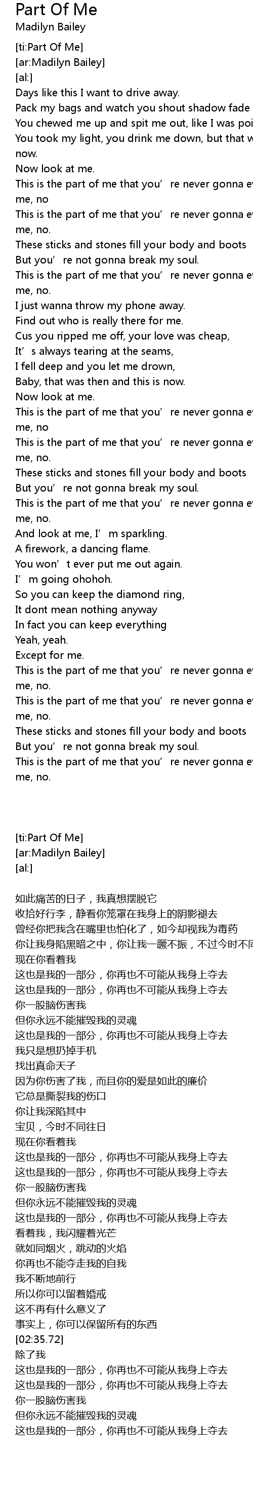 | [00:59.68] | This is the part of me that you' re never gonna ever take away from me, no. |