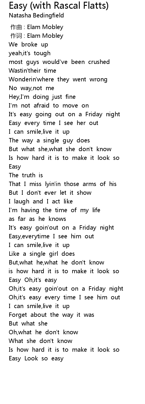 | [02:12.728] | Easy Oh, it' s easy |