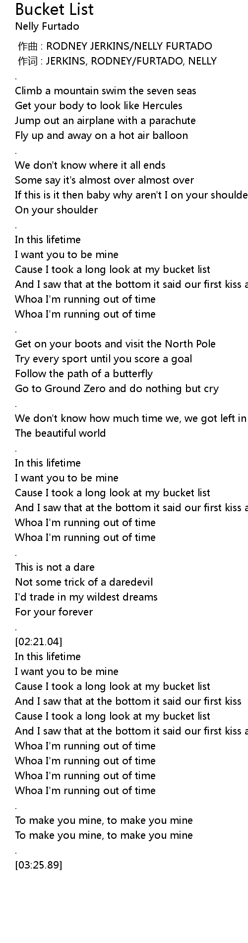| [02:39.59] | Cause I took a long look at my bucket list |