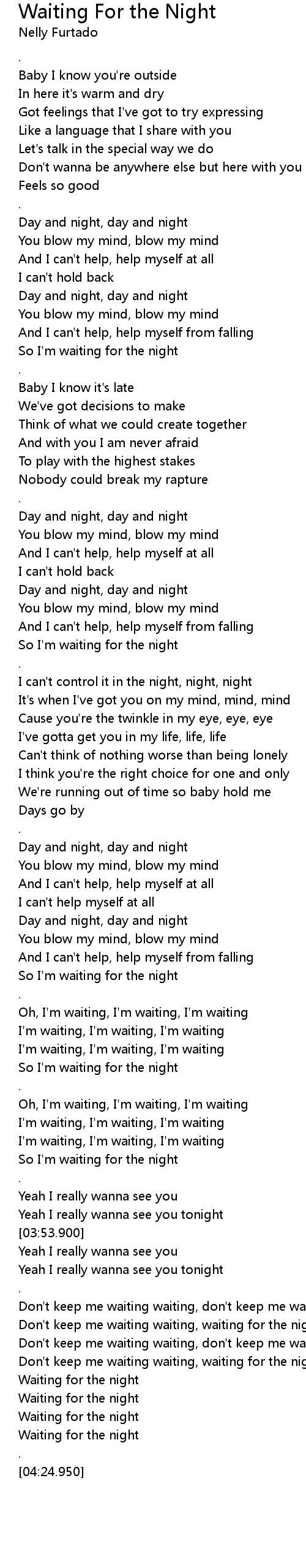 Don't keep me waiting waiting, don't keep me waiting for the night |