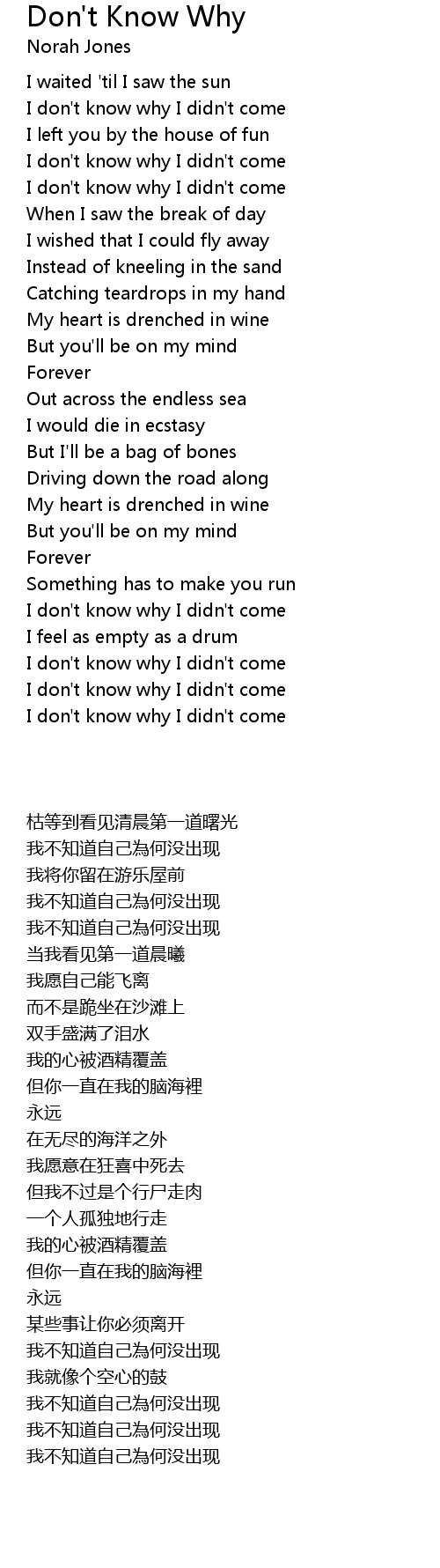 Don't Know Why Lyrics