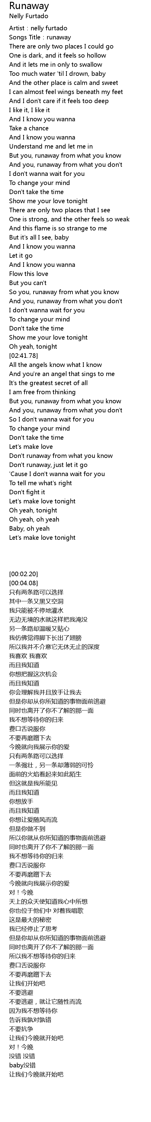 | [00:02.20] | Artist:nelly furtado |