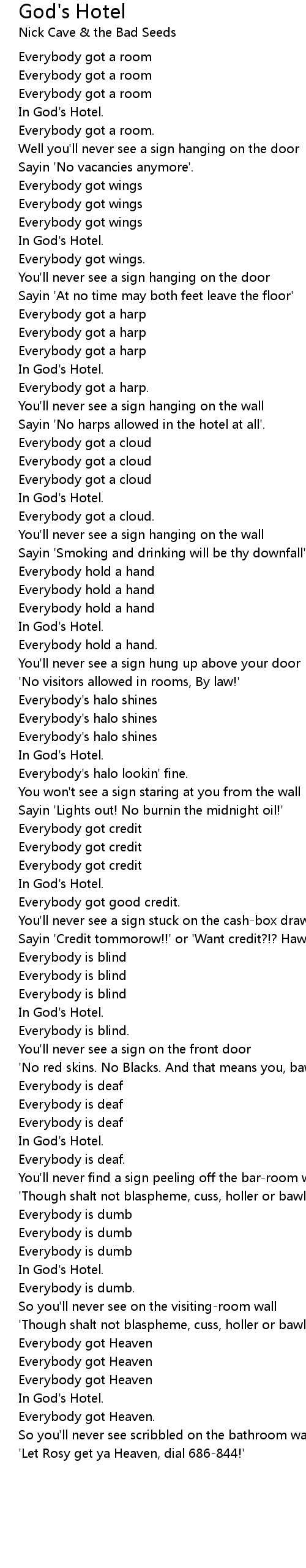 In God's Hotel. |