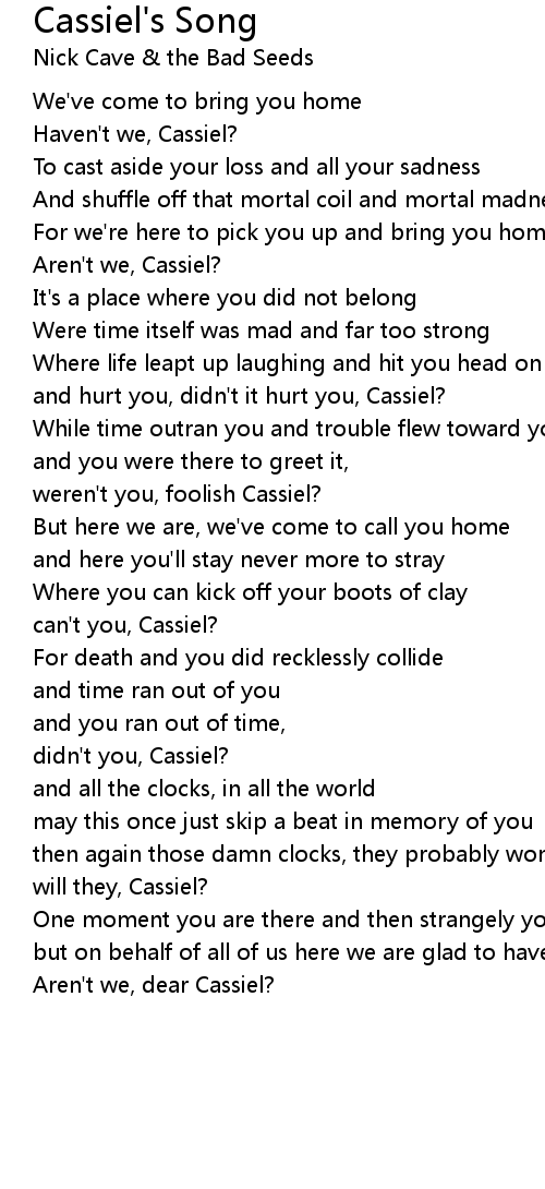 and hurt you, didn't it hurt you, Cassiel? |