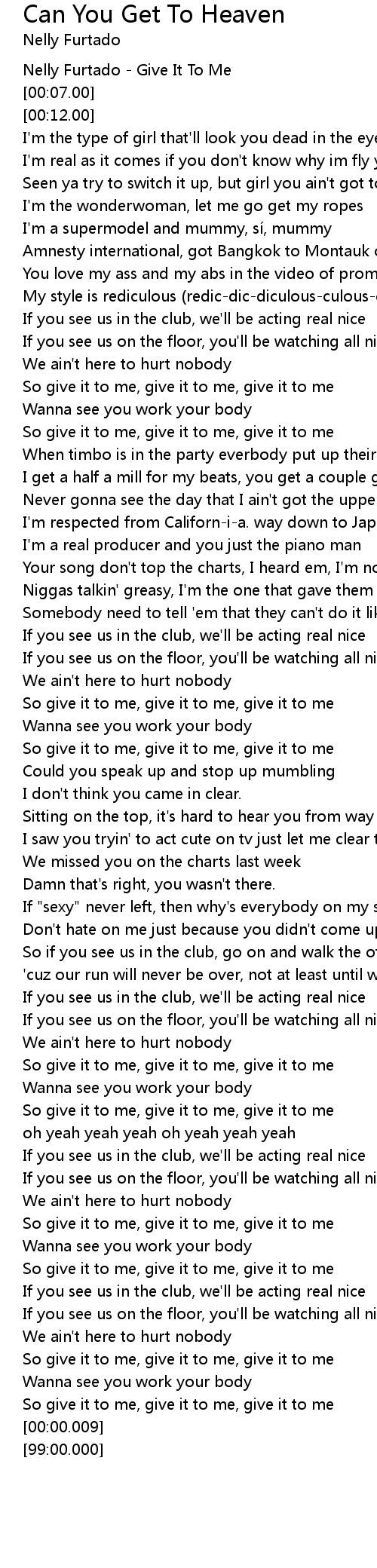 | [00:02.00] | Nelly Furtado Give It To Me |
