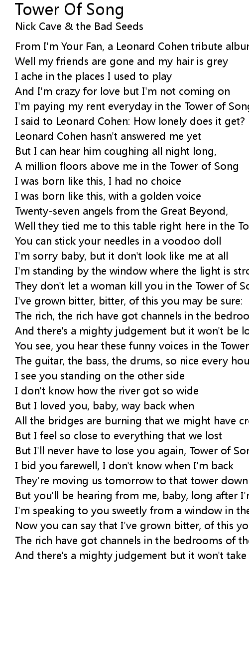 You see, you hear these funny voices in the Tower of Song - oh yeah - |