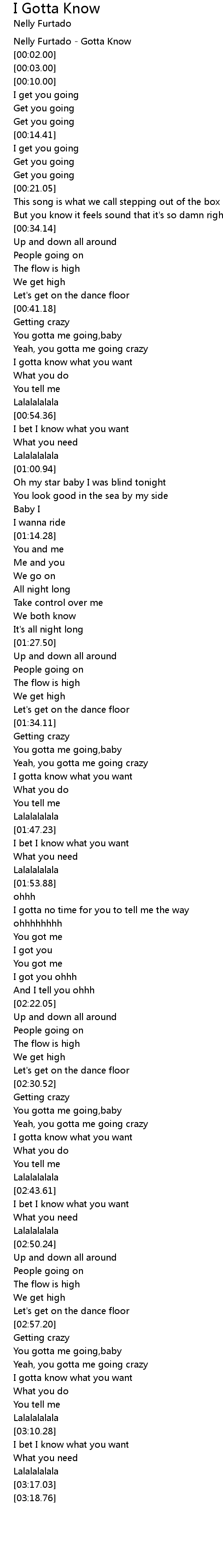 Nelly Furtado - Gotta Know |