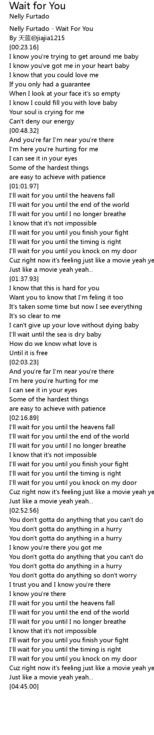 | [01:02.78] | I'll wait for you until the heavens fall |