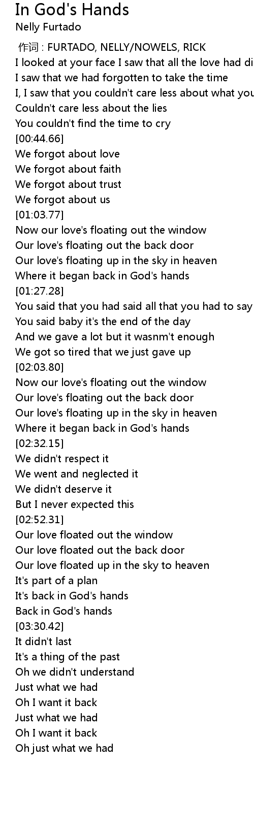| [00:00.00] | 作词 : FURTADO, NELLY/NOWELS, RICK |