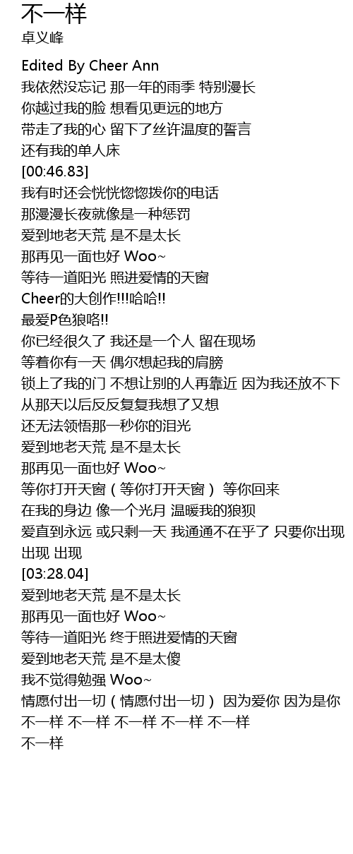 | [04:29.14] | 不一样 不一样 不一样 不一样 不一样 |