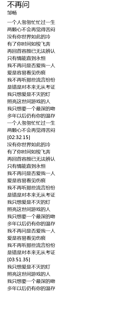 | [03:36.71] | wǒ bù zài wèn shì fǒu ài wǒ yī rén |