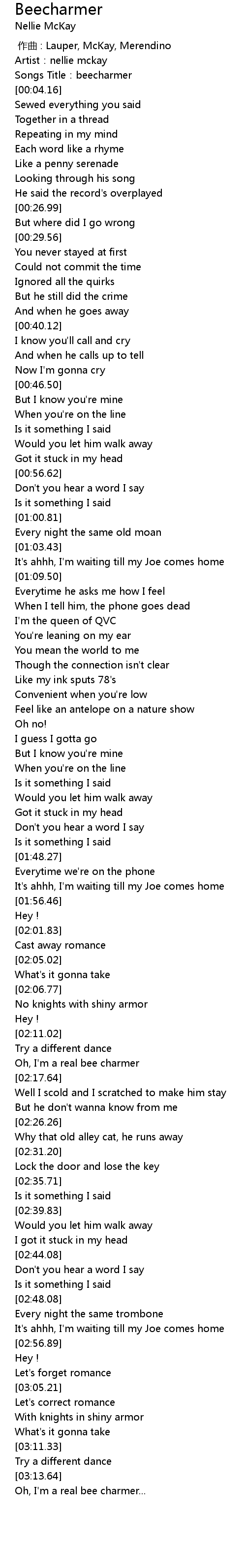 | [03:14.33] | Oh, I' m a real bee charmer... |