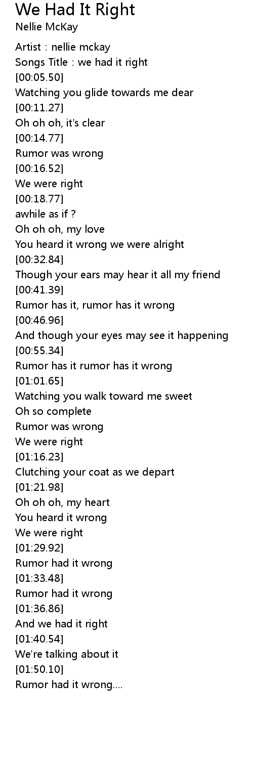 | [01:34.79] | Rumor had it wrong |