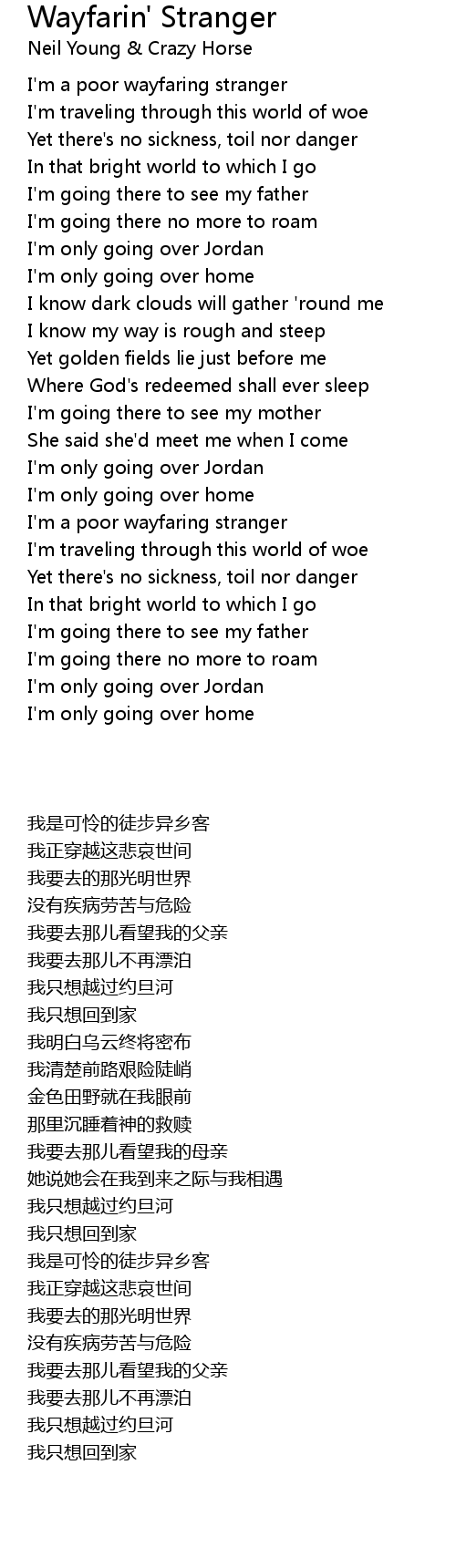 I'm a poor wayfaring stranger |