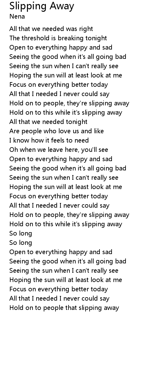 | Hold on to people, they're slipping away | |