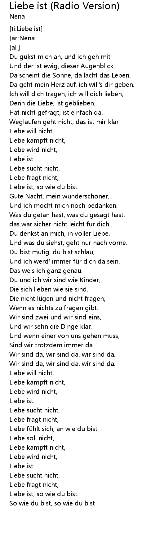 | [03:24.85] | Liebe ist, so wie du bist. |
