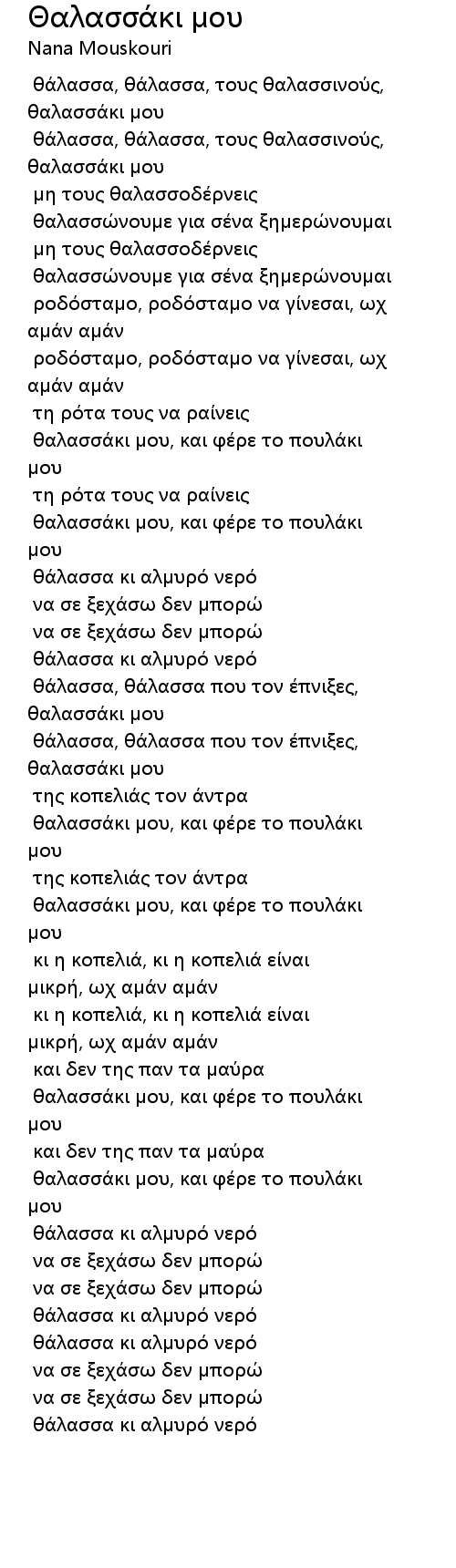θάλασσα, θάλασσα, τους θαλασσινούς, θαλασσάκι μου |