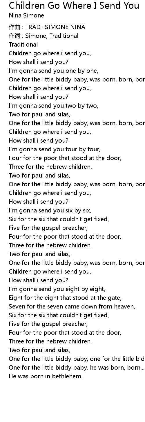 | Children go where i send you, | |