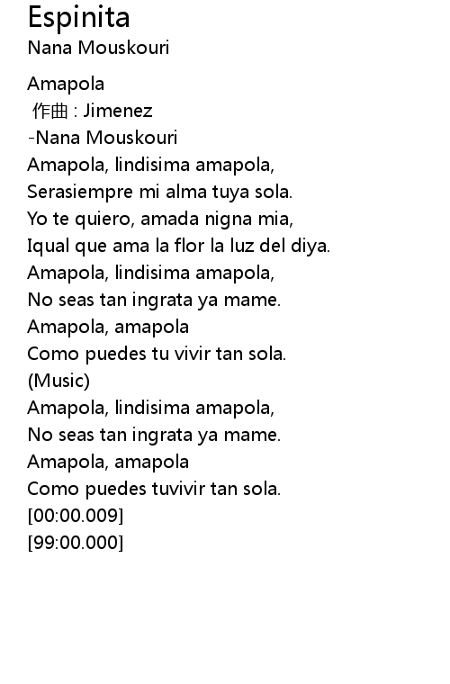 | [00:58.35] | Iqual que ama la flor la luz del diya. |