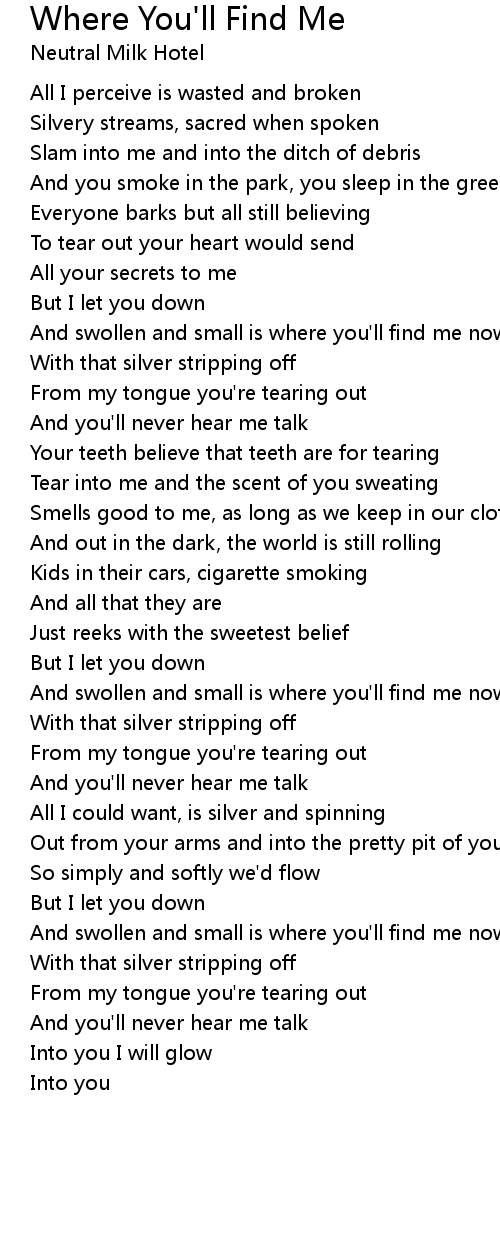 And swollen and small is where you'll find me now |