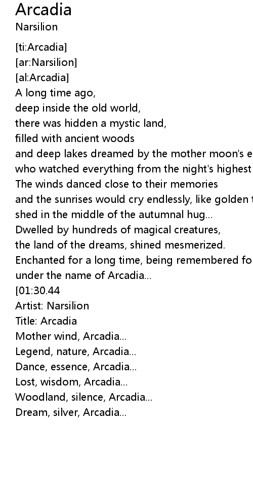 | [02:20.46] | Lost, wisdom, Arcadia... |