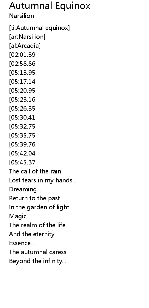 | [01:24.20][02:58.86][05:11.52] | Autumn... |