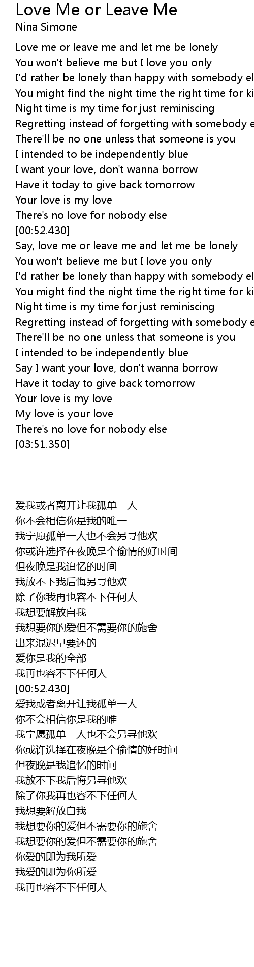 | [00:04.760] | Love me or leave me and let me be lonely |