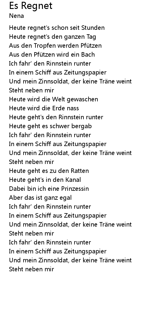 | Und mein Zinnsoldat, der keine Tr ne weint | |