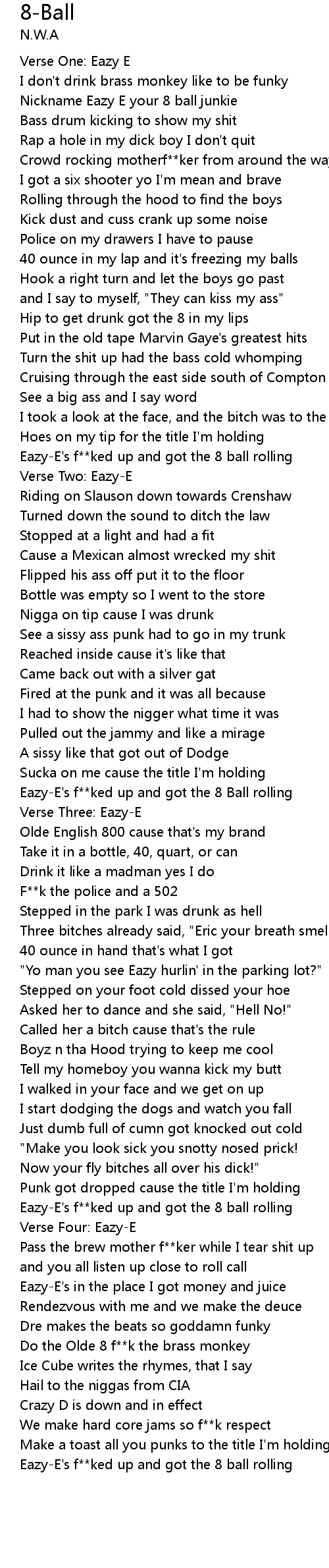 Eazy-E's f**ked up and got the 8 Ball rolling |