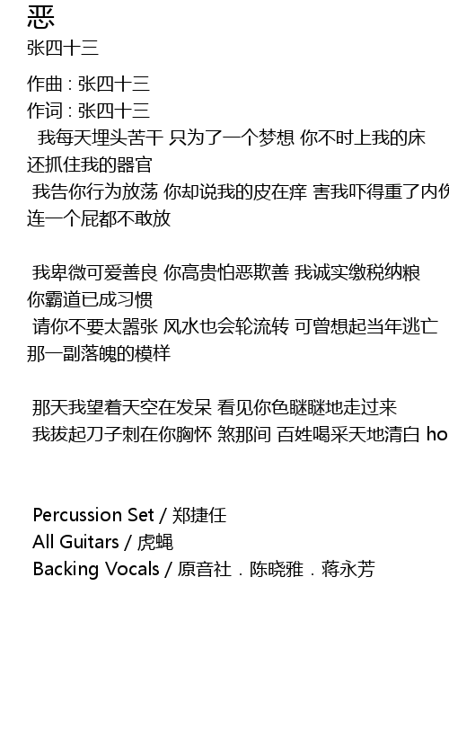| 作词 : 张四十三 | |
