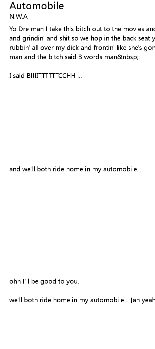 and we'll both ride home in my automobile... [f**kin' head in this car] |