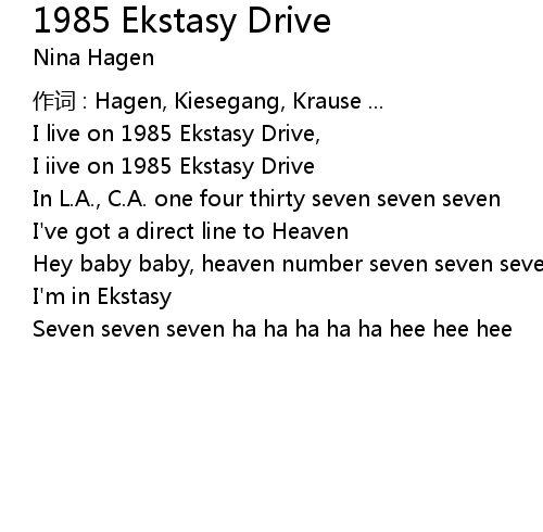 | I iive on 1985 Ekstasy Drive | |
