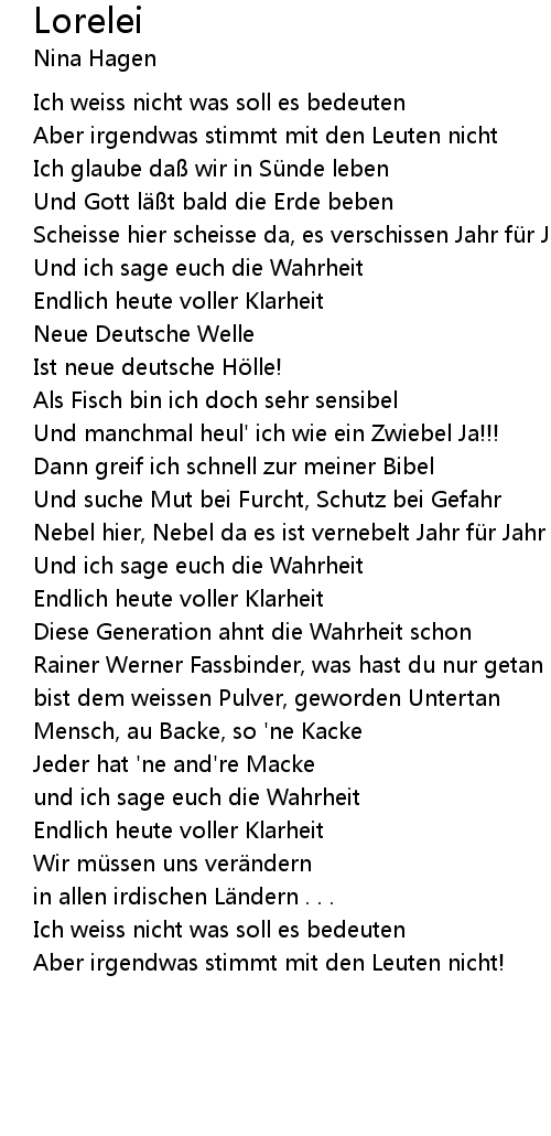 | Ich weiss nicht was soll es bedeuten | |